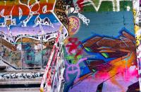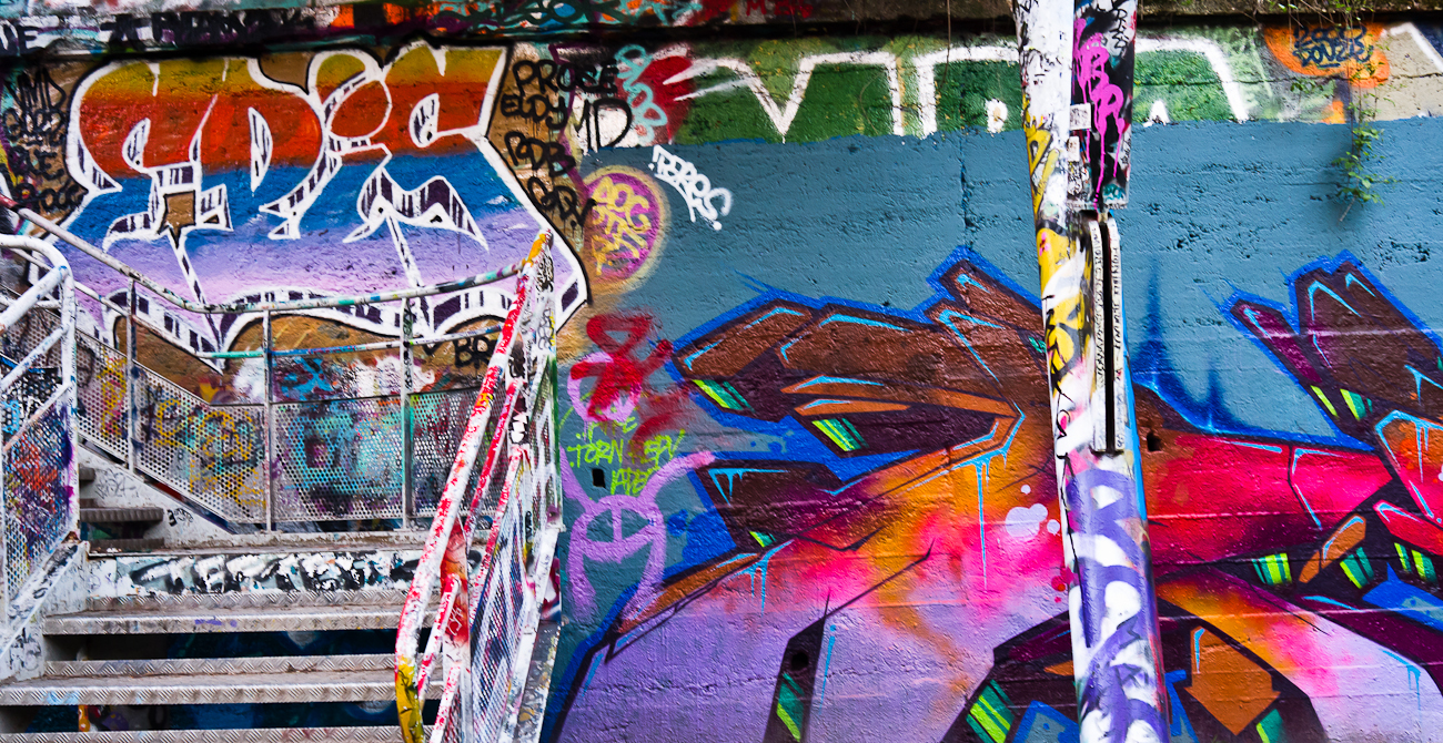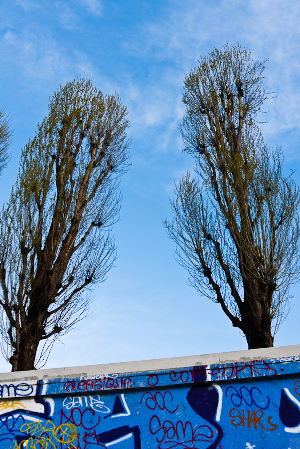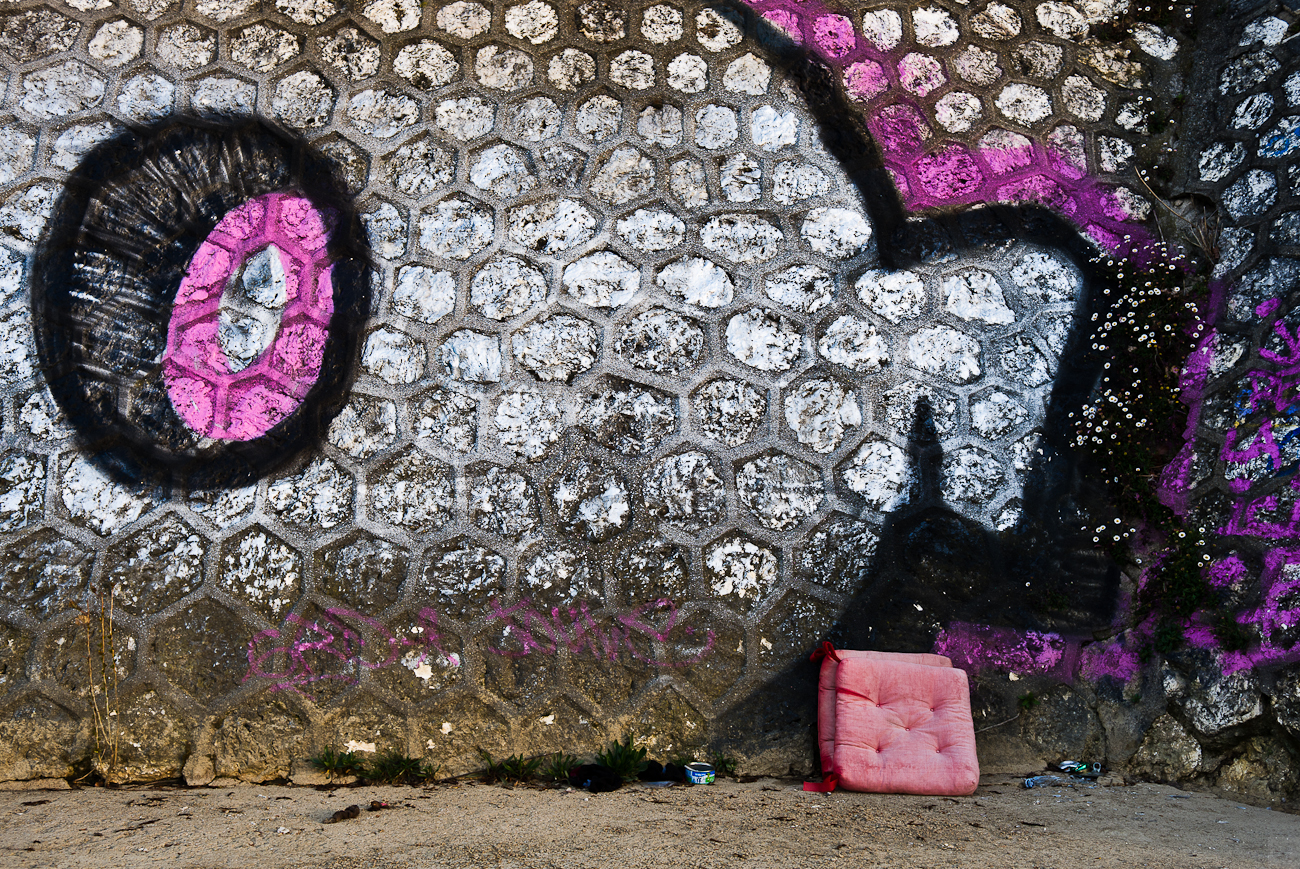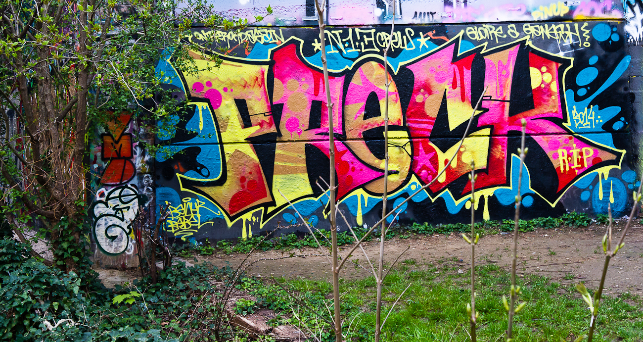 Les tags ont fleuri pendant l'hiver. Les murs à nus leur ont offert l'espace vital pour proliférer. Avec l'arrivée du printemps, la nature commence à reprendre le dessus. Le vert, le beige et d'autres couleurs subtiles remplacent les teintes fluo... Les tags se taillent alors vers les portails le long des rails. Fuyant les barreaux réducteurs, ils se réfugient au bord de l'eau, là où de tout temps des tags éphémères ont été dessinés de la pointe des cannes à pêche...