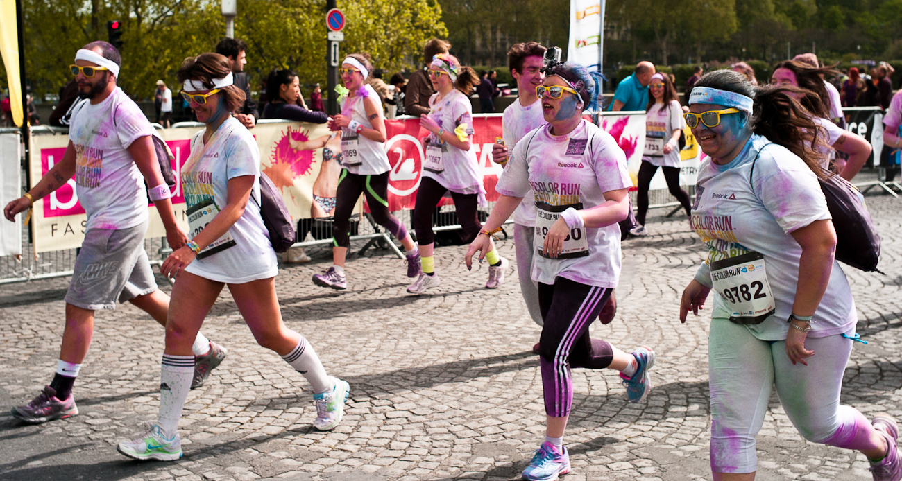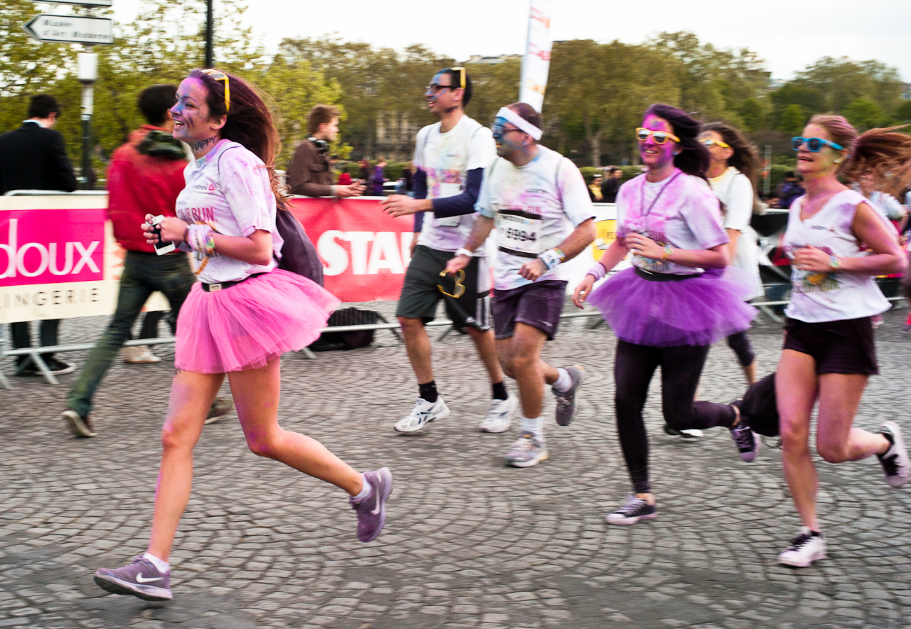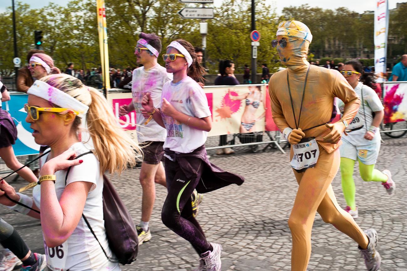 Paris, le ciel est bleu, et l’arc-en-ciel est partout au bord de l’eau. La première « color run » de Paris est en train de se dérouler. Moment festif par excellence, la musique se joint aux couleurs pour offrir un grand bonheur à tous les participants. C’est un dimanche de fête que n’aurait pas renié Tati…