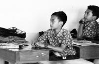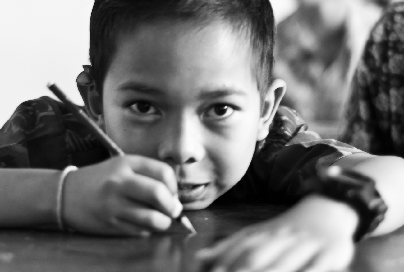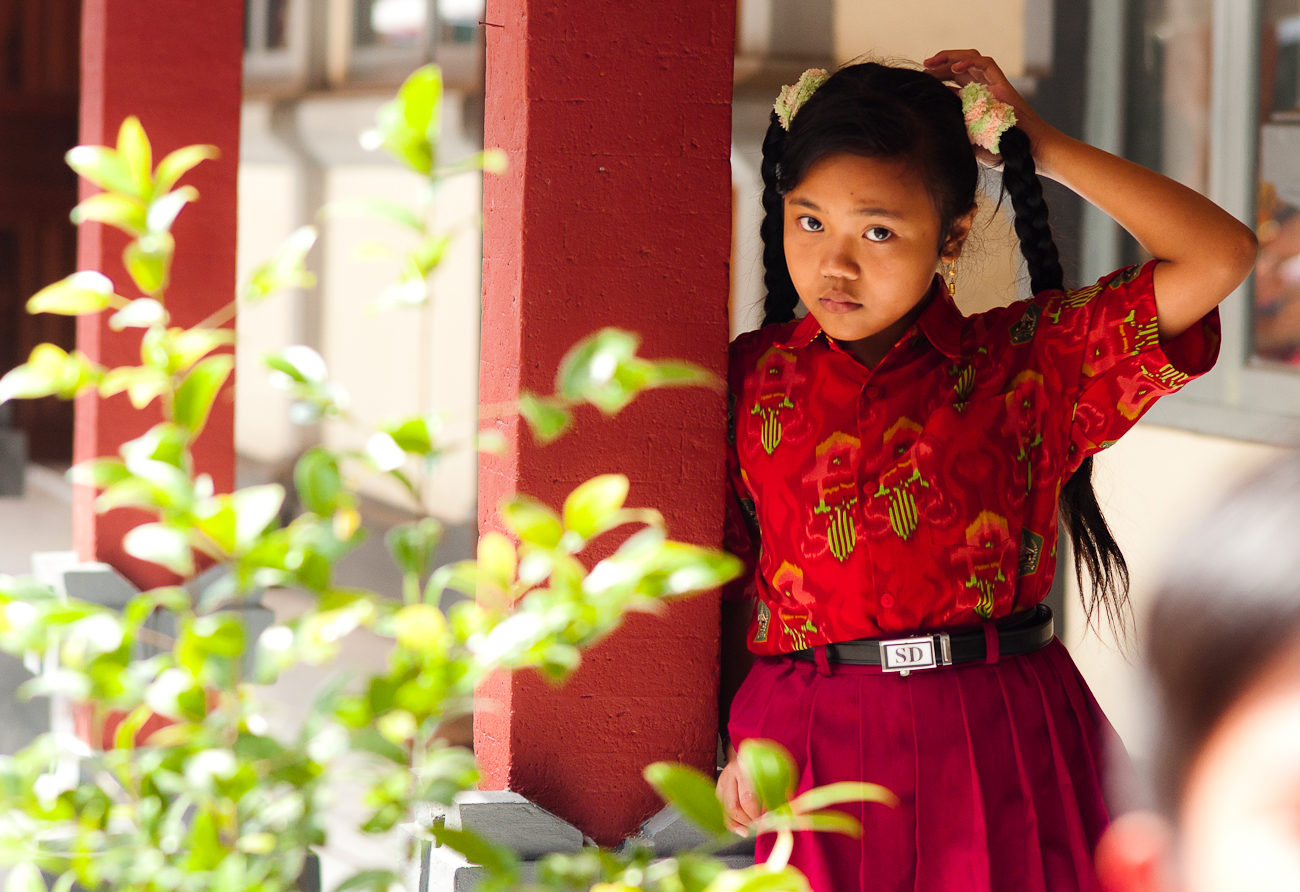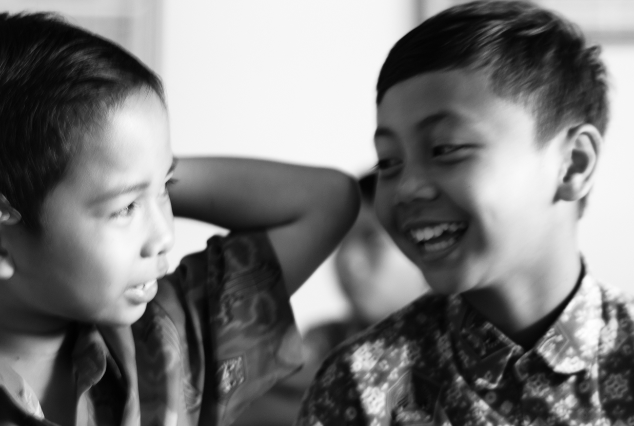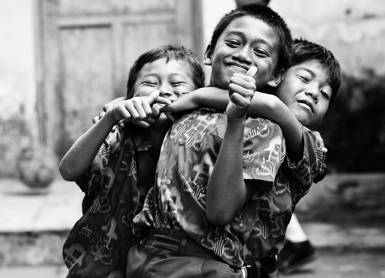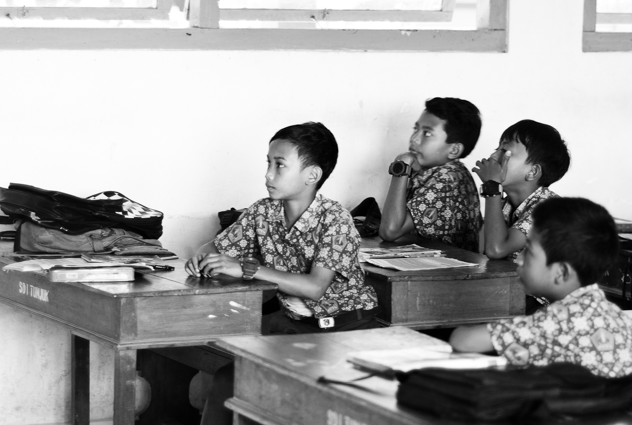 Une école à Bali, perdue au milieu des rizières en pleine campagne, mais tellement semblable à ce que l’on pourrait trouver en France. Les filles studieuses, les garçons insouciants. Le rigolo, le travailleur… Nullement intimidés, ils étaient heureux de me montrer combien l’ouverture sur le monde était importante. L’anglais est hésitant, mais l’envie de partager leur fait accomplir des miracles. Ils savent qu’ils ne veulent plus travailler aux champs et qu’ils ont une chance extraordinaire de fréquenter cette école…